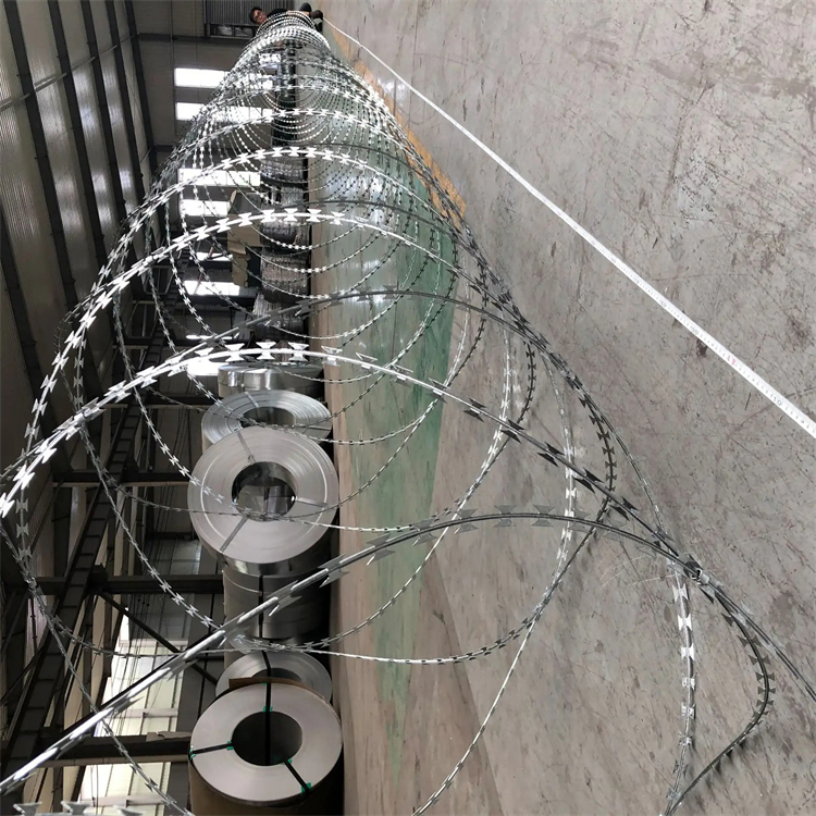 螺旋型刀片刺網(wǎng)刺網(wǎng),有多種架設(shè)方式可供選擇,施工迅速,既省經(jīng)費,又可達到嚇阻的效果。
