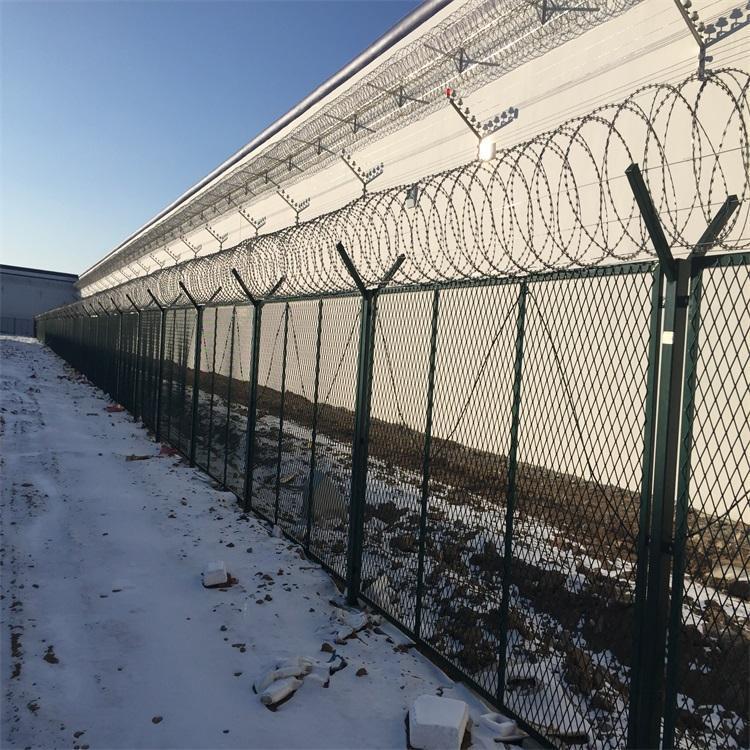 監(jiān)獄內(nèi)防拳爬的隔離網(wǎng)顧名思義就是為了防止犯人脫逃而在監(jiān)區(qū)監(jiān)墻3米之內(nèi)設(shè)置的防脫逃蛇腹型刀刺網(wǎng),隨著監(jiān)獄安防系統(tǒng)的一步步升級,監(jiān)獄防拳爬隔離網(wǎng)也產(chǎn)生了很多種樣式,使得隔離網(wǎng)樣式由統(tǒng)一單調(diào)而變得豐富多樣。 艾瑞小編給大家介紹幾款監(jiān)獄鋼網(wǎng)墻常見的幾種樣式: