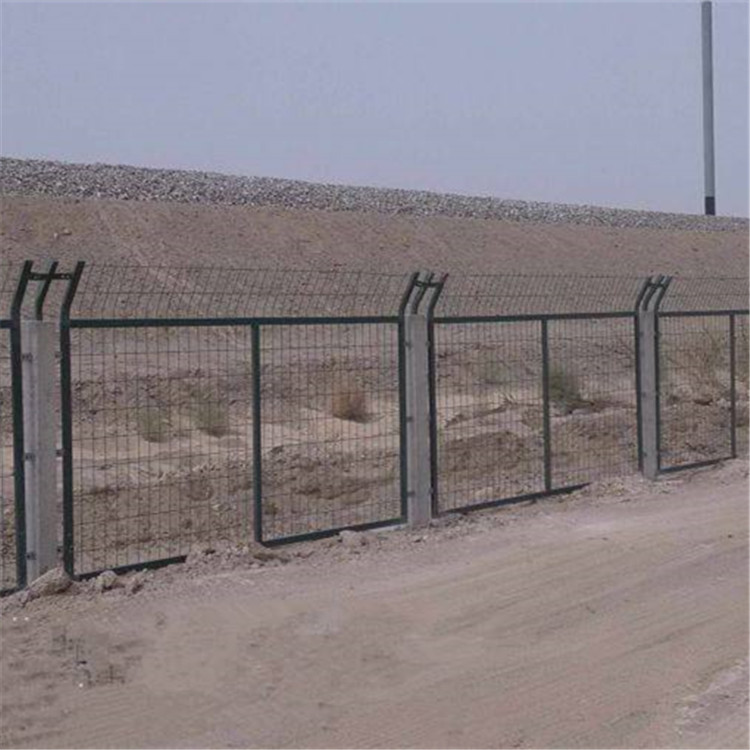 鐵路防護柵欄顧名思義就是用在鐵路兩側的圍欄,常用的搭配形式為平面為1.8米高*3米長的邊框護欄,頂部設計為蛇腹型刀刺網而構成的。這樣的設計就是為了防止行人胡亂攀爬,隨意穿行鐵路,以免發生鐵路交通事故,給國家帶來不可估量的損失,想到鐵路兩側擁有鐵路防護柵欄時,也會時常發生那些令人觸目驚心的慘重事故,例如:小到農村羊倌放羊隨意穿行鐵路損失幾頭羊。中到行人與列車相撞的悲慘事故,上薄公堂。重到那些窮兇極惡的盜匪,去強行扒掉鐵軌賣錢,造成運營列車脫軌,從而發生重大型交通事故。這些血淋淋的教訓時常提醒著我們“鐵路線上無小事”人命關天事關重大,容不得一絲馬虎。