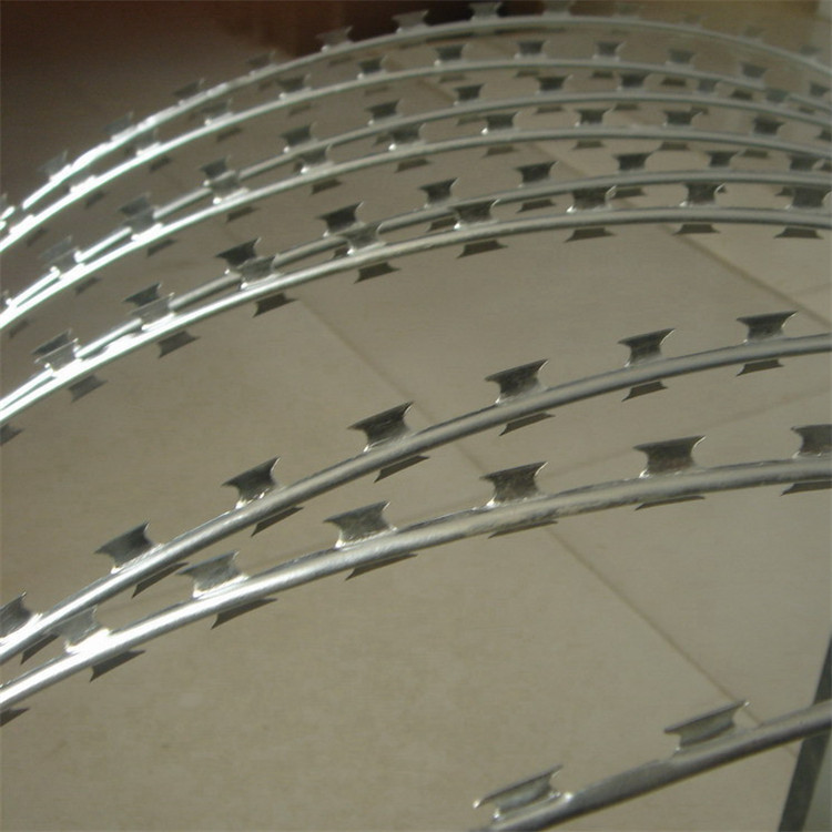 為了加強(qiáng)監(jiān)獄鋼網(wǎng)墻的高安全性,常有客戶要求鋼網(wǎng)墻的上面在刺網(wǎng)來加強(qiáng)安全性能。刀刺網(wǎng)具有美觀、經(jīng)濟(jì)實(shí)用、防阻效果好、施工便利等優(yōu)異特點(diǎn),刀刺網(wǎng)常見的表面處理有電鍍鋅,熱鍍鋅和噴塑處理。目前,刀片剌繩已被廣泛應(yīng)用于許多國家的工礦企業(yè)、園林公寓、邊防哨所、軍事領(lǐng)域、監(jiān)獄、看守所、政府建筑物和其他國家的安全設(shè)施。