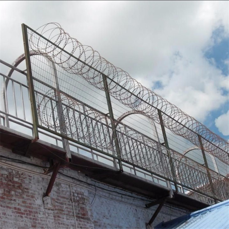 監獄鋼網墻刀片剌網具有嚇阻、防翻越等效果材質堅硬高強度高張力,造型設計獨特不宜觸摸因而能達到極好的防護隔離效果監獄護欄網還具有施工簡便經濟實用等優點。